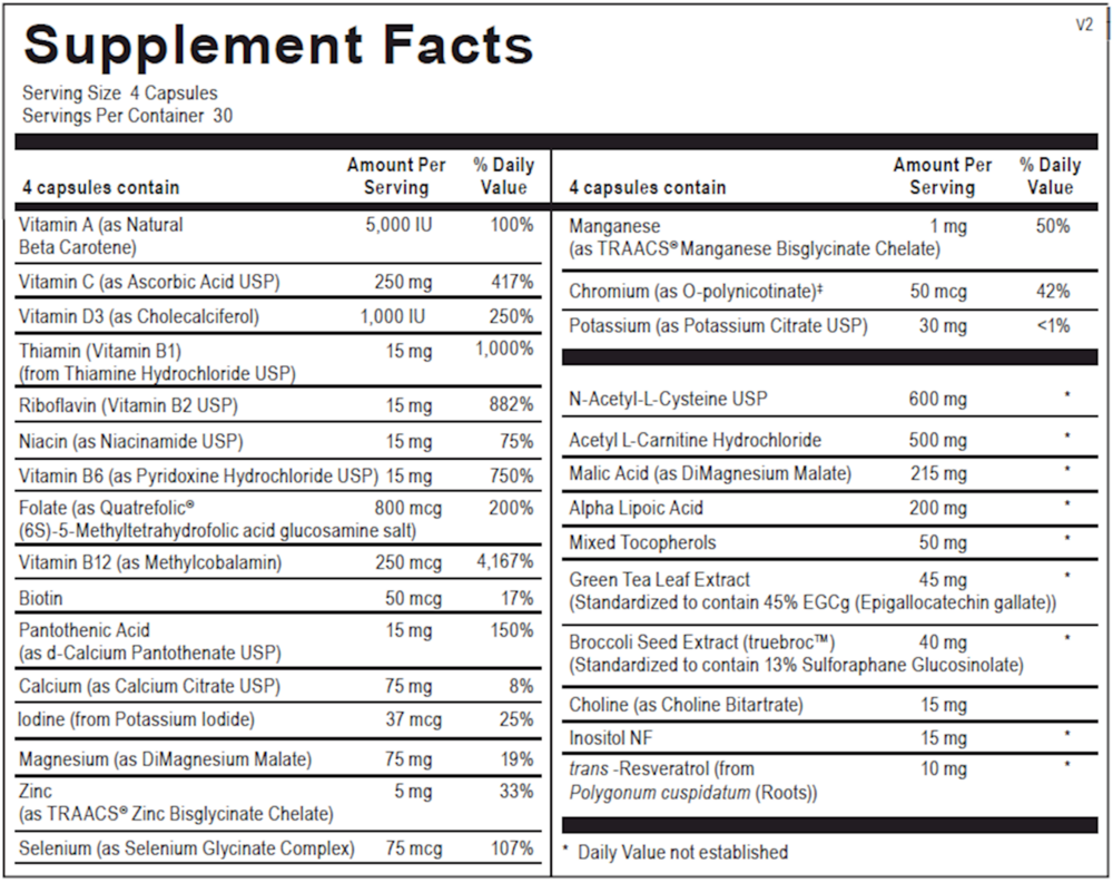 | Broccoli Seed Extract (TrueBroc® ) (Standardized to contain 13% Sulforaphane Glucosinolate) | 40 mg |